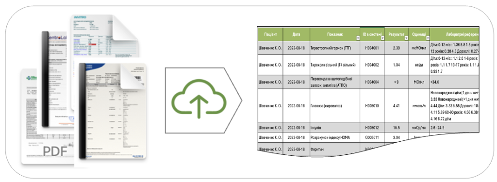 - Система автоматично розпізнає файл, систематизує показники та приведе до єдиного формату, для зручного доступу та аналітики.